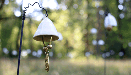 Gracefully arcing on slender stems in the grass behind Maison Vieilhescazes, ceramic bells chime, many holding mysterious tokens that entice viewers to investigate and wander in search of more. Jardin de l’Empereur, an installation created by VCCA Fellow Melissa S. Armstrong during her residency in Auvillar, France, rolls gently along the path leading to Coeur de Mon Coeur, a sculpture by artist and VCCA Artistic Director, Craig Pleasants.