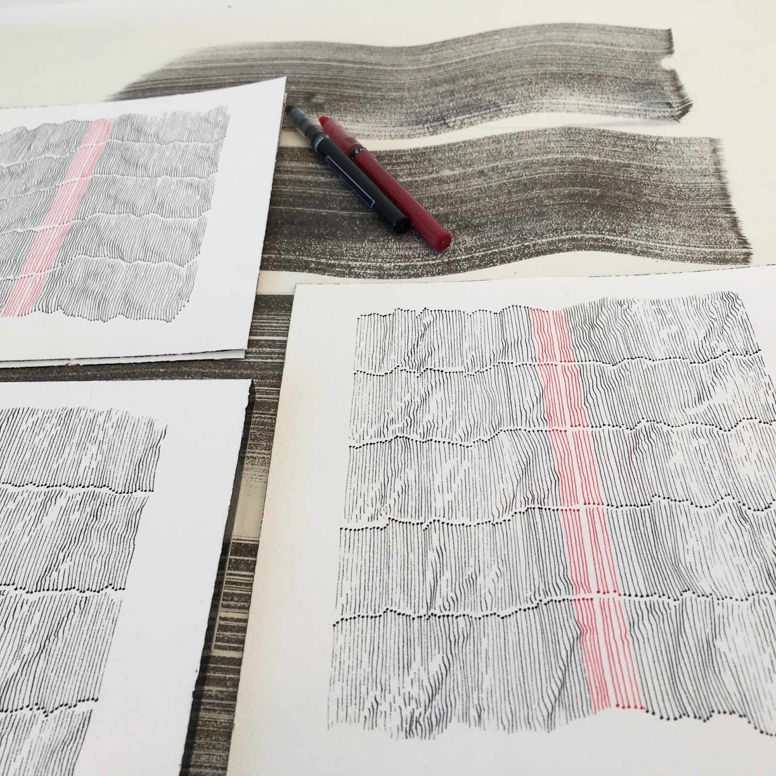 At VCCA, Theresa was working on a series of line drawings made with a ballpoint pen and larger works made with oakgall ink on Japanese paper. The work shares an affinity, but the effect is quite different.